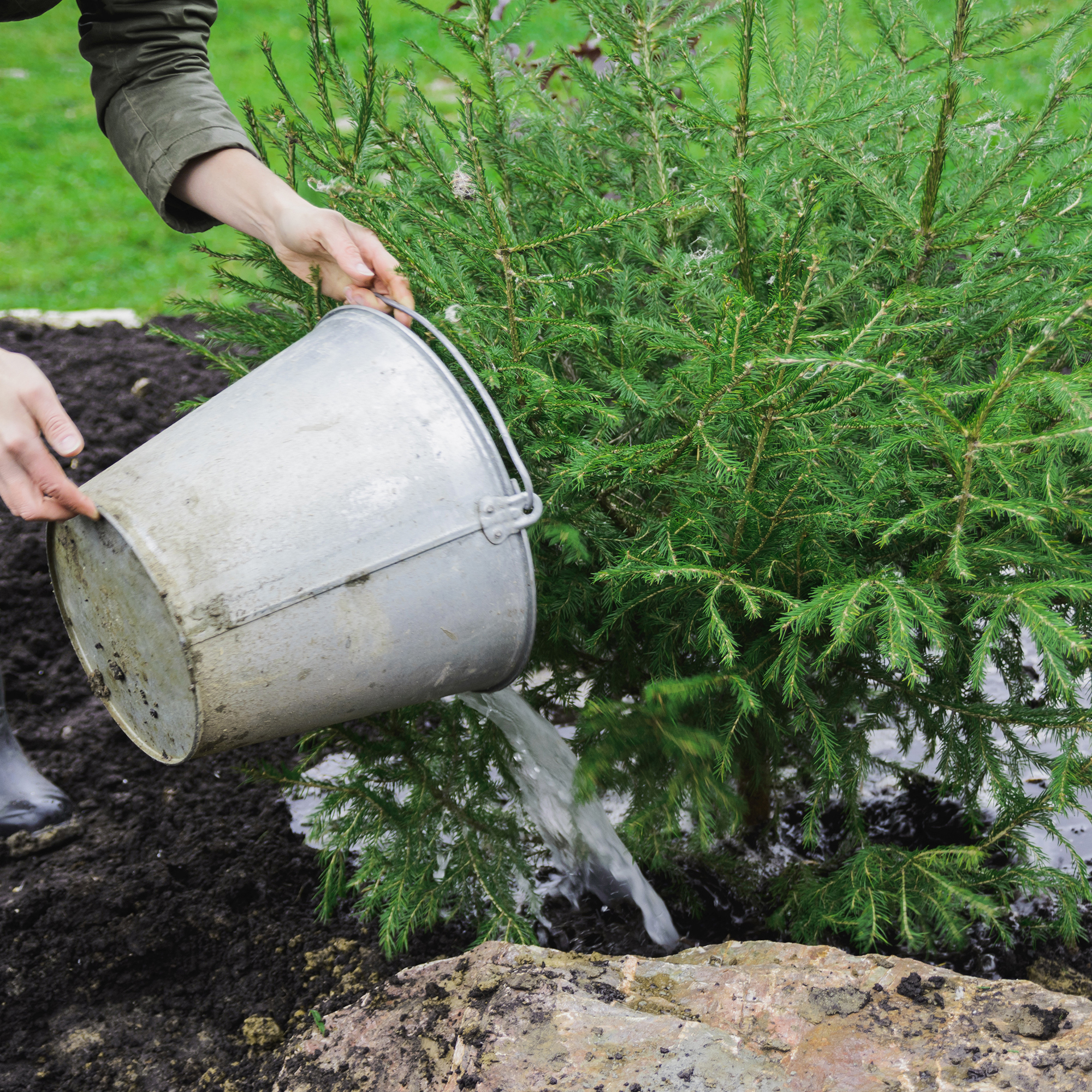 The ideal time to water is when the ground isn't frozen. Also, when there isn't any snow cover and temperatures are above 40 degrees. Watering mid-day allows the water to soak in before it freezes at night. Don’t forget to drain and put away your hose after each watering and drain your water spigot again. This can be tedious, but you’re protecting the investment you made in your beautiful garden— and your plumbing!