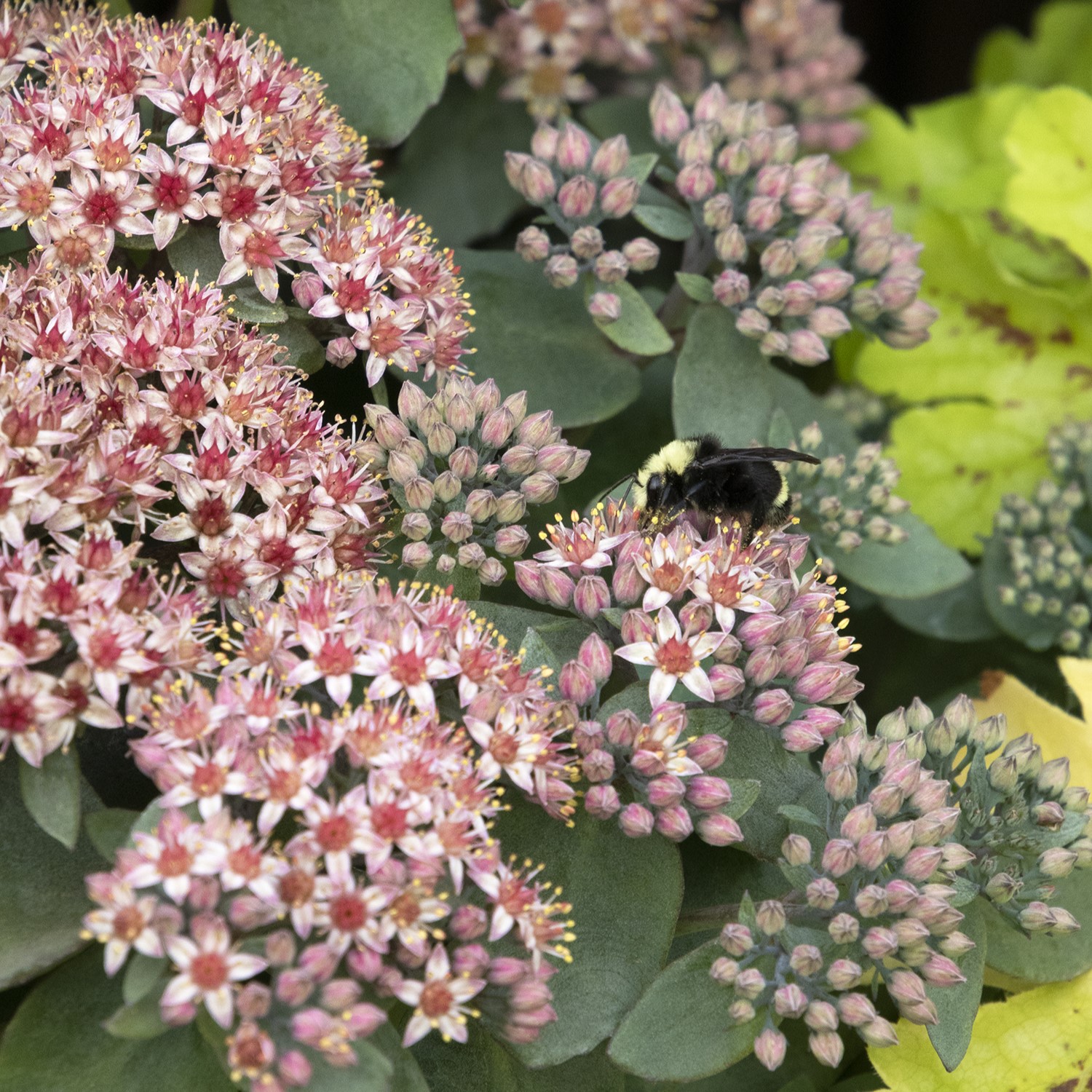 Gray-green succulent foliage forms a dense, short-stemmed mound and is blanketed in pink flowers in summer. Evergreen in mild winter regions. Full sun. Up to 15" tall and wide.