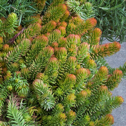 Brilliant chartreuse-yellow, needle-like foliage forms a quick groundcover. Adds cheery color to containers, dry slopes, and flowering borders. Excellent for use as year-round coverage for beds with spring bulbs. In winter, the foliage turns orange in northern climates. Full sun. Up to 6" tall, 36" wide. Zones 3-11.