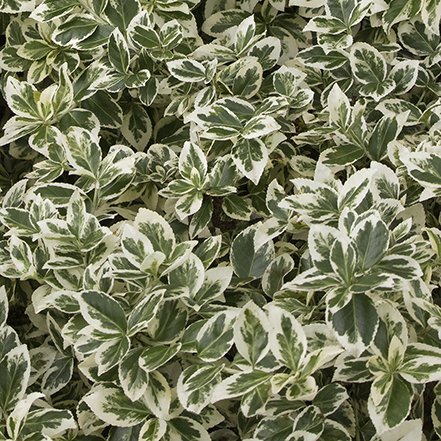 A beautifully variegated shrub with a low, spreading form highlighted by rich green leaves with ivory white margins that are often tinged with pink in winter. Highly adaptable and versatile in sun or shade, this is a useful accent for brightening dull or dim spaces in the landscape. Partial shade to full sun. Up to 3' tall, spreading to 6' wide. Zones 4-9.