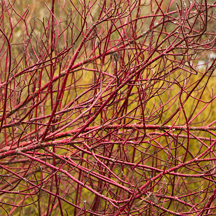 Current year's growth features outstanding coral-red branches on a multi-stemmed shrub. Yellowish-white flowers are followed by small blue berries. Bare stems create an attractive winter accent, and are a wonderful addition to seasonal flower arrangements. Partial to full sun. Up to 9' tall, 5' wide. Zones 2-8.