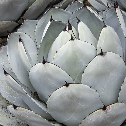 This photo captures the variety of plants in this garden - which is more than I would typically choose and to create cohesion, I leaned on a repetition of foliage color and form to quiet the wild array as well as repeating a few key plants in the garden.  I also mixed in ornamental grasses and other soft-looking plants as a counterpoint to the hardscape and sculptural succulent and agave forms. Â