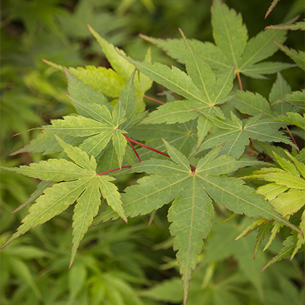 A beautiful tree with brilliant red-coral bark on young branches and deeply cut, pale-green leaves with red margins. Thrives in dappled shade in warmer regions, or full sun in cooler zones. Filtered to full sun. Up to 25' tall and 20' wide. Zones 5-8.