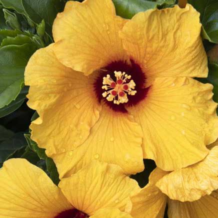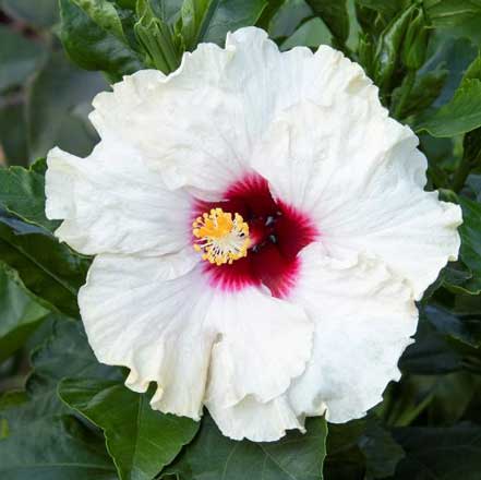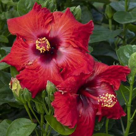 Add a tropical touch to your landscape or container garden with Jazzy Jewel® Tropical Hibiscus, a prizeworthy collection. Blooms last long as three (!!!) days, bringing you hot, saturated color or, in the case of Opal, pure white brilliance. Well branched, Jazzy Jewel Hibiscus boasts beautiful blooms up and down the entire stem. Glossy, deep-green foliage has even greater pest and disease resistance, including bacterial leaf spot. Hibiscus rosa-sinensis. Full sun. 4’ tall, 5’ wide. Zone 9 – 11, but overwinter indoors in colder climates.