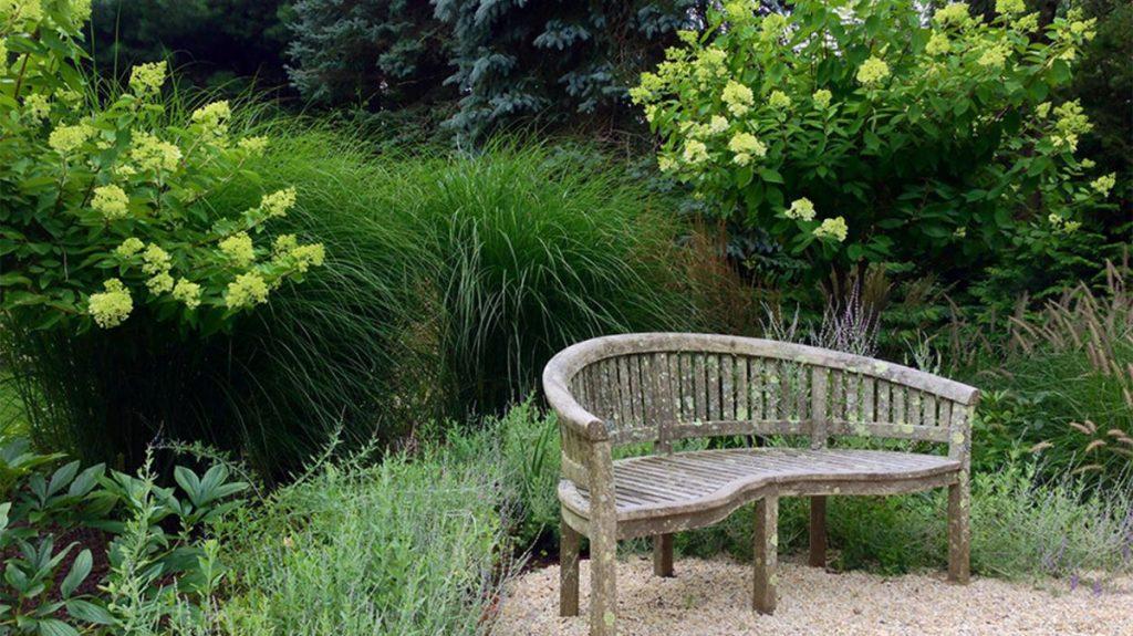 As summer begins to wind down, some of the best plants you can grow seem to suddenly spring to life. Panicle hydrangeas, blooming now, will linger into fall. Grasses will only get better as they bloom and change colors. And, tucking in a bench always invites lingering. Create this on a smaller scale with containers. Each of these plants thrives in a large pot in full or even 1/2 day sun.