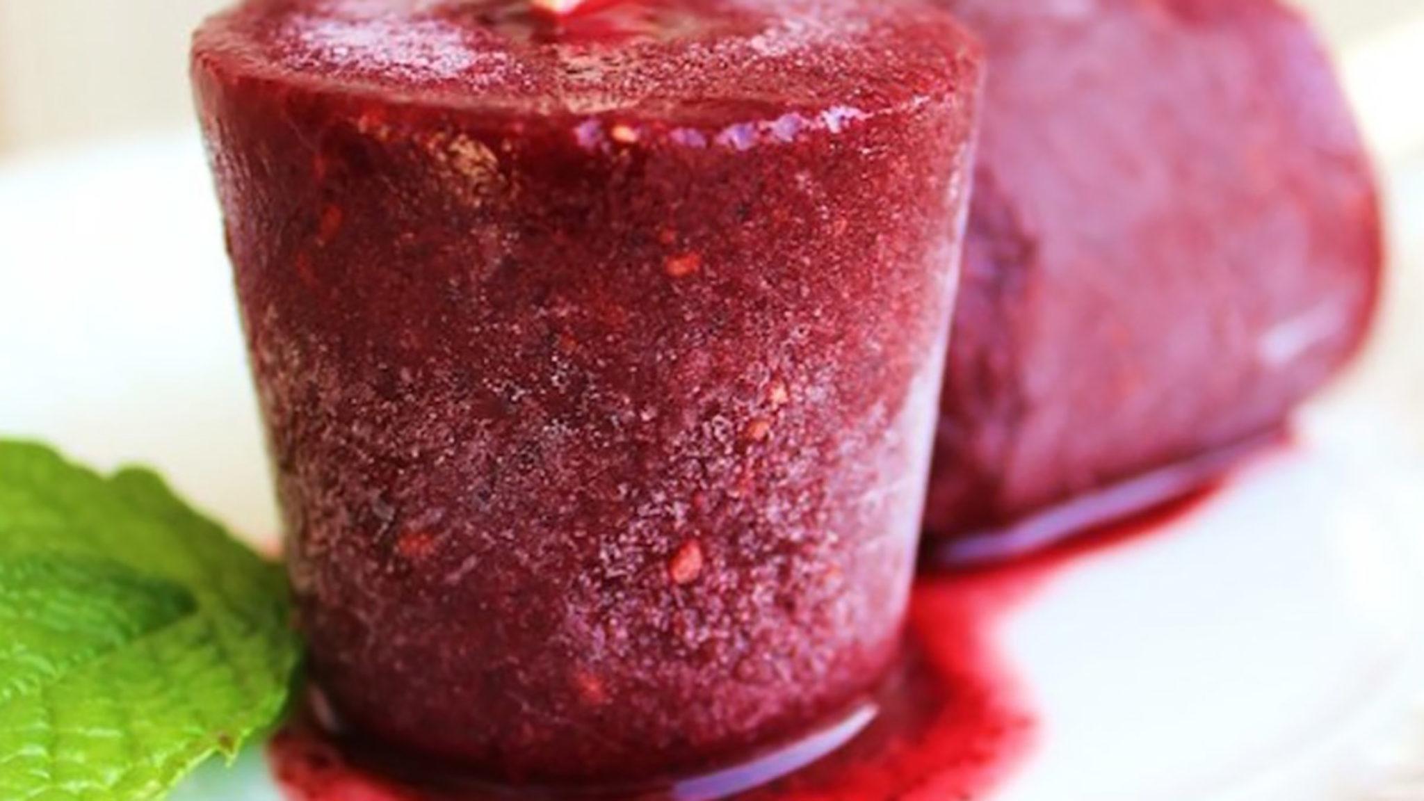 Roast fresh berries in a bit of sugar and balsamic vinegar and add sweet red wine. This will give this adult popsicle a richness and depth that we found pretty seductive. This one from Pastry Affair was addictive (and it had a bit of a kick, too).