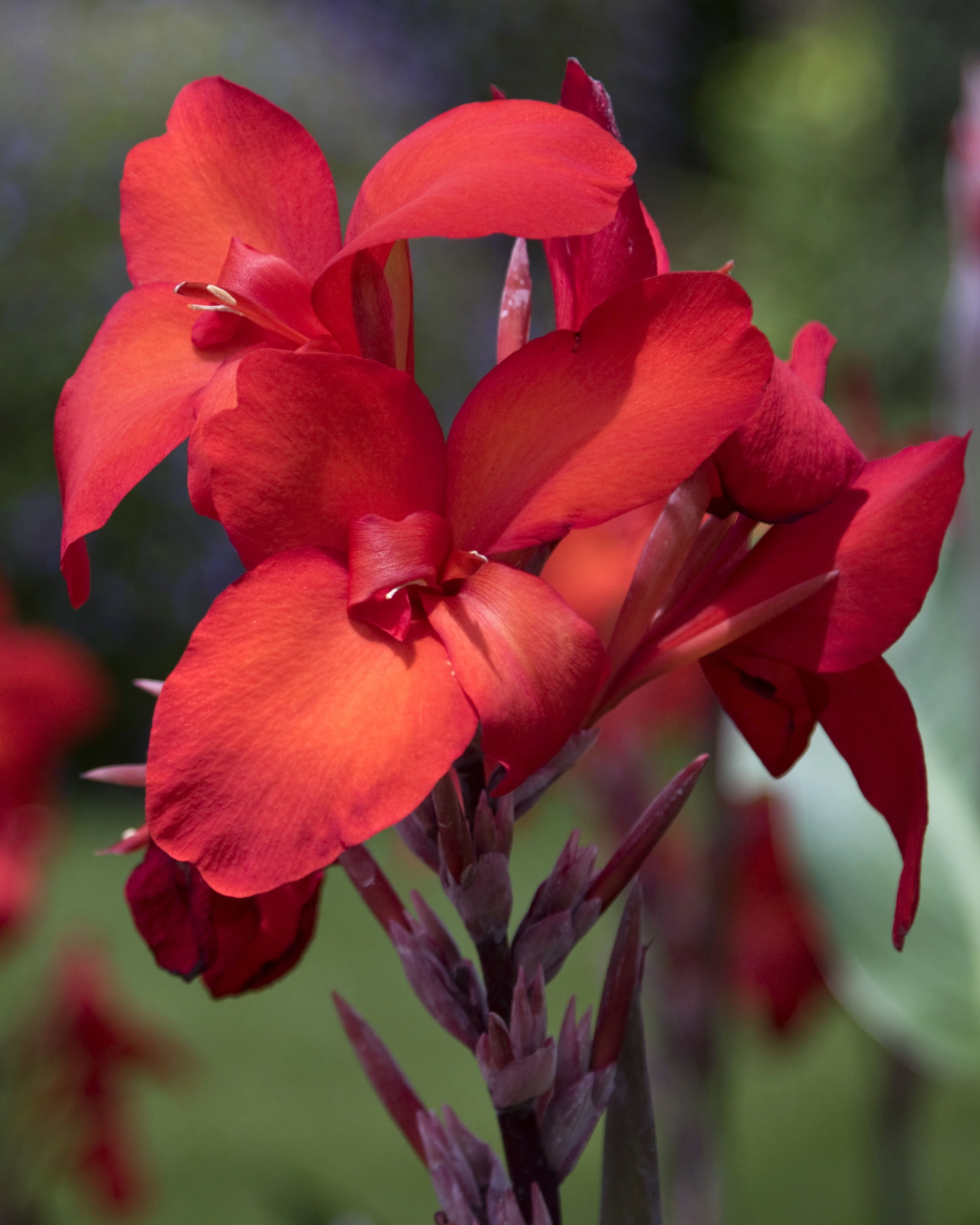 Massing this canna creates an undeniably tropical look in larger landscapes. Flowers evoke a feeling of orchids and halaconia while large leaves are decidedly exotic. Add to existing beds and borders for dramatic, long lasting contrasting foliage, tall form or texture. A natural beside pools and water gardens or for problem solving in low wet soils. In spare modern gardens use in masses or as living columns; exceptional played against boldly colored walls. Excellent in pots on porch, patio, terrace and balcony.