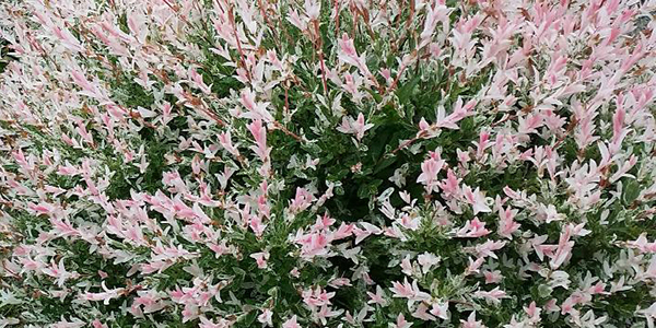 Fantastic variegated foliage of pink, white and bright apple green on a graceful, easy to grow shrub. Occasional pruning to shape promotes a flush of colorful new leaves. Foliage resists heat scorch and stands up to rain and wind. Shiny red stems add appeal even when bare in the winter landscape. Deciduous.