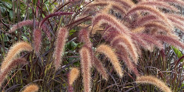 A popular drought tolerant grass that forms a tidy, dense clump of purplish maroon blades topped with rose-red plumes. Beautiful as a landscape specimen or planted in groups. Unlike the species, this cultivar does not reseed. An herbaceous perennial grass in mild winter regions; provides quick annual color in any climate.