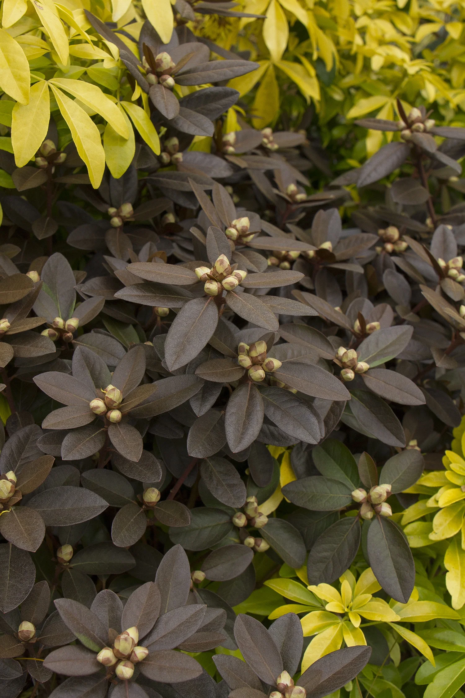 | History | The PJM group of rhododendrons are the result of a hybridization program that began North America in the 1930's by Massachusetts nurserymen Peter J. Mezitt and son, Edmund Mezitt. These hybrids resulted from crosses between Rhododendron carolinianum and Rhododendron dauricum var. sempervirens, and are noted as having exceptional winter hardiness. The PJM rhododendrons are characteristically vigorous yet compact, and evergreen with small, elliptical leaves that are glossy dark green, turning reddish purple in autumn. |