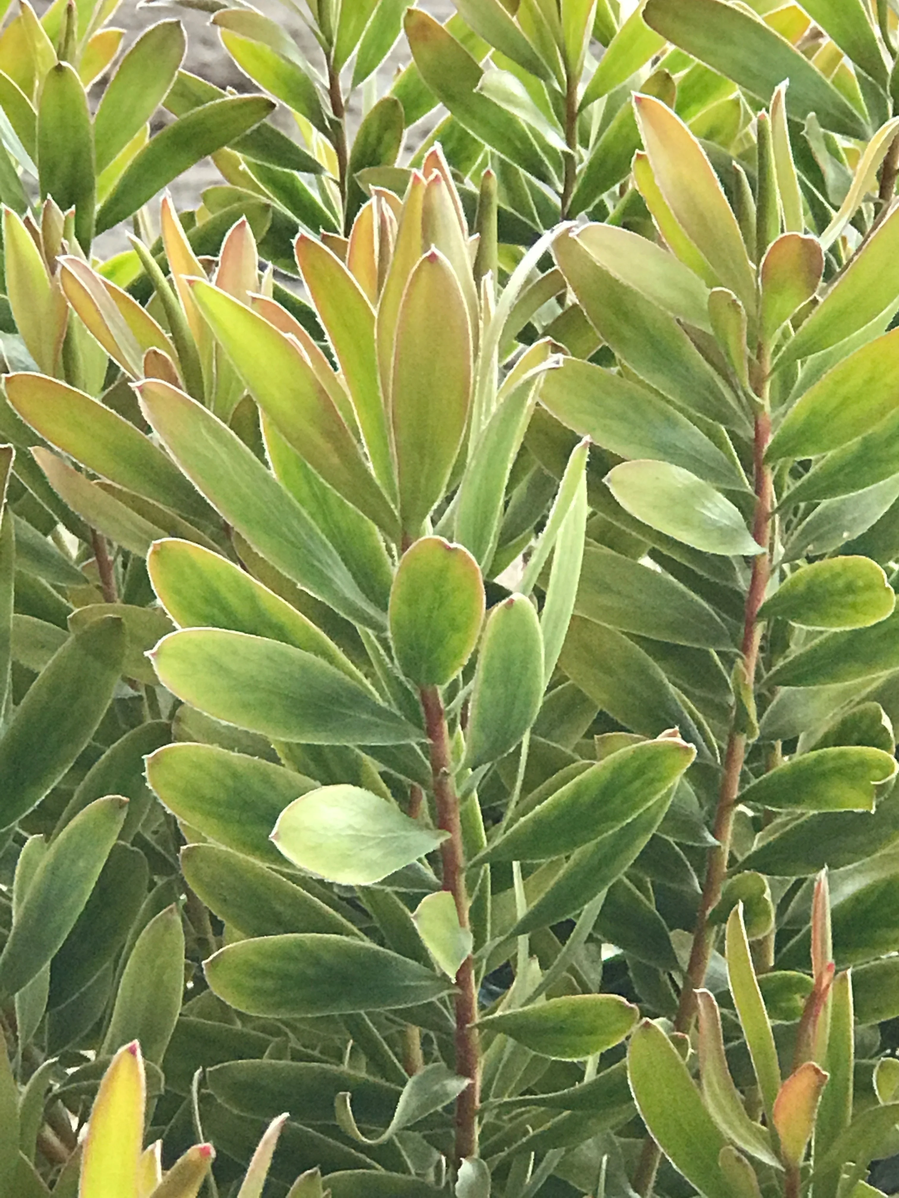 | Description | This dense, mounding, upright-branching, evergreen shrub thrives in sunny coastal climates. Reddish stems with whorls of bright green foliage develop showy yellow bracts that reveal yellow cone-like flowers at the tips during winter and into spring, adding dynamic color highlights to the landscape. A frost-tender perennial, hardy to 25°F. |