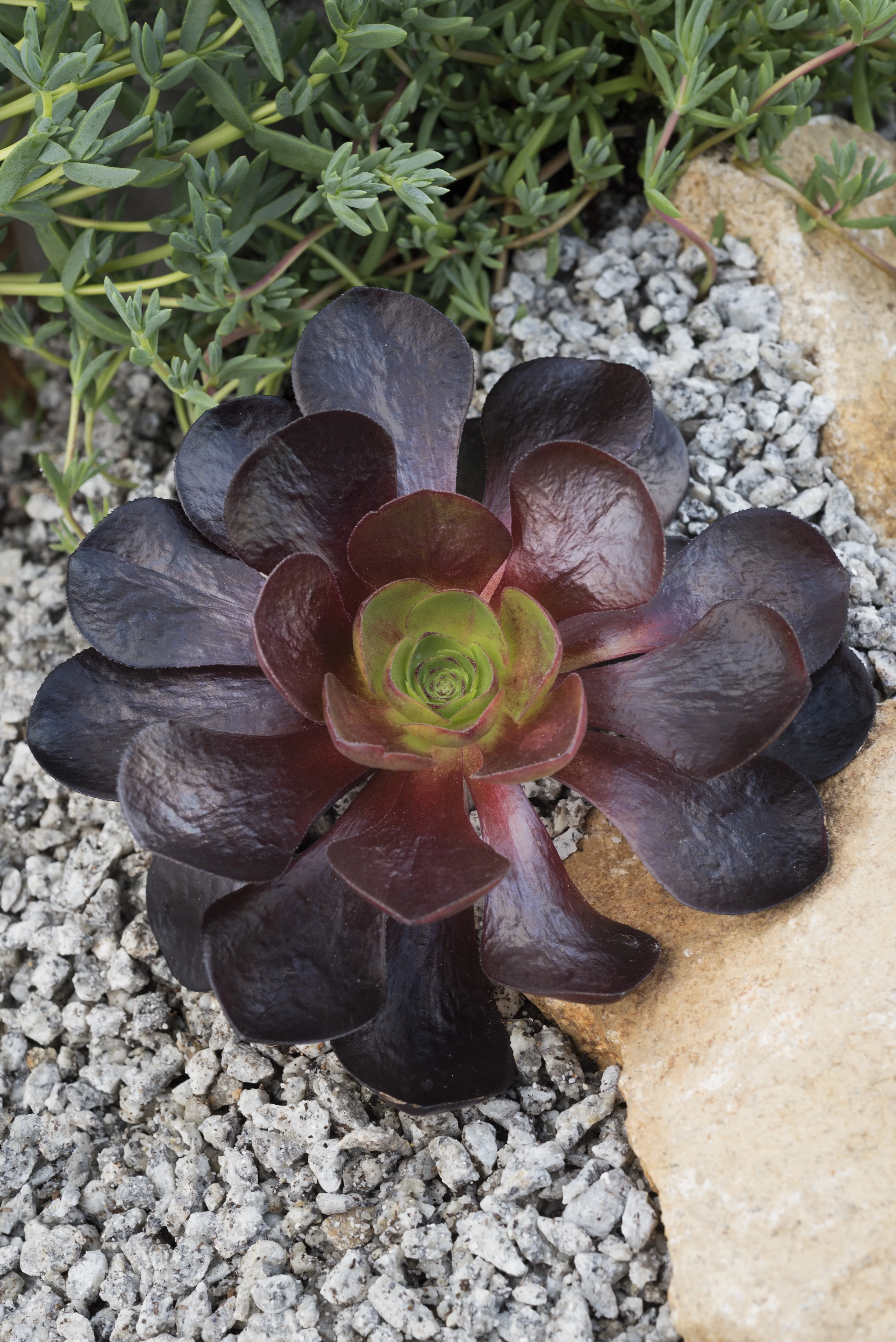| Description | A groundbreaking intergeneric cross between Aeonium and Sempervivum, giving us the look of Aeonium with better hardiness. Destiny forms a large rosette of glossy foliage that stays dramatically dark all year long. The dark foliage surrounds a green center of tight foliage. After 2 to 3 years, creates a head of yellow flowers before dying, sending out offsets that grow into a new plant. An excellent addition to containers or rock gardens. |